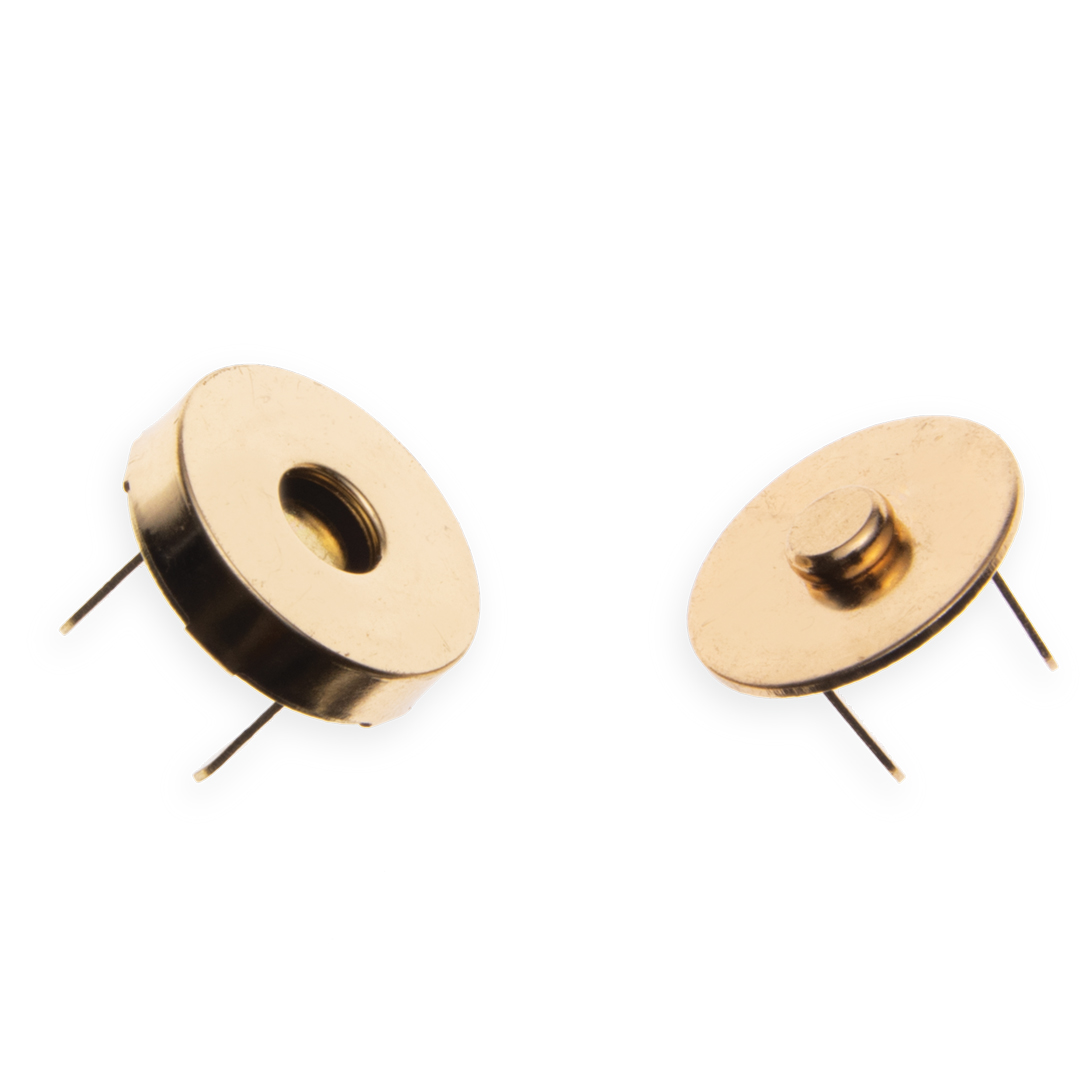 Μαγνήτες κουμπώματα τσαντών, εξαιρετικής αντοχής, κομψά και πολύ πρακτικά. Διατίθενται σε χρυσό, νίκελ και μπρονζέ. Το τεμάχιο περιλαμβάνει: το θυλικό, το αρσενικό και τα δυο στεφανάκια.