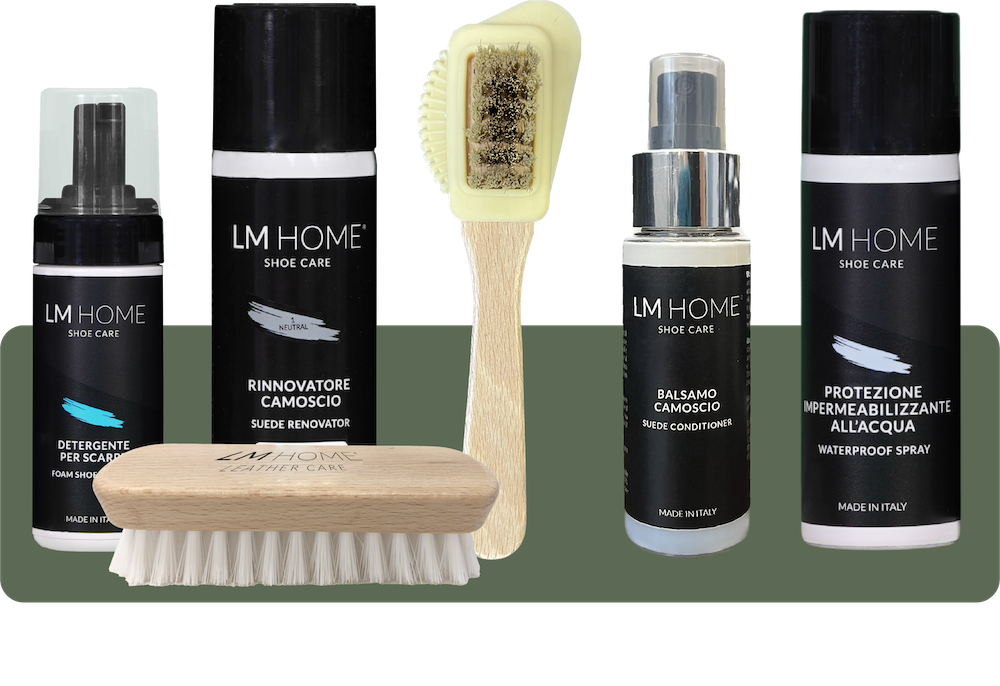 Το πακέτο περιποίησης  για Καστόρ και SUEDE CARE KIT LM HOME, δημιουργήθηκε για να εγγυηθεί τη φροντίδα και τη συντήρηση των παπουτσιών σας και των ειδών σουέτ και nubuck. Το πακέτο αποτελείται από συγκεκριμένα προϊόντα υψηλής ποιότητας σχεδιασμένα από επαγγελματίες του κλάδου, τα οποία εξασφαλίζουν απόλυτη προσοχή, από τον καθαρισμό μέχρι την αποκατάσταση, τη θρέψη και τη στεγανοποίηση του δέρματος.